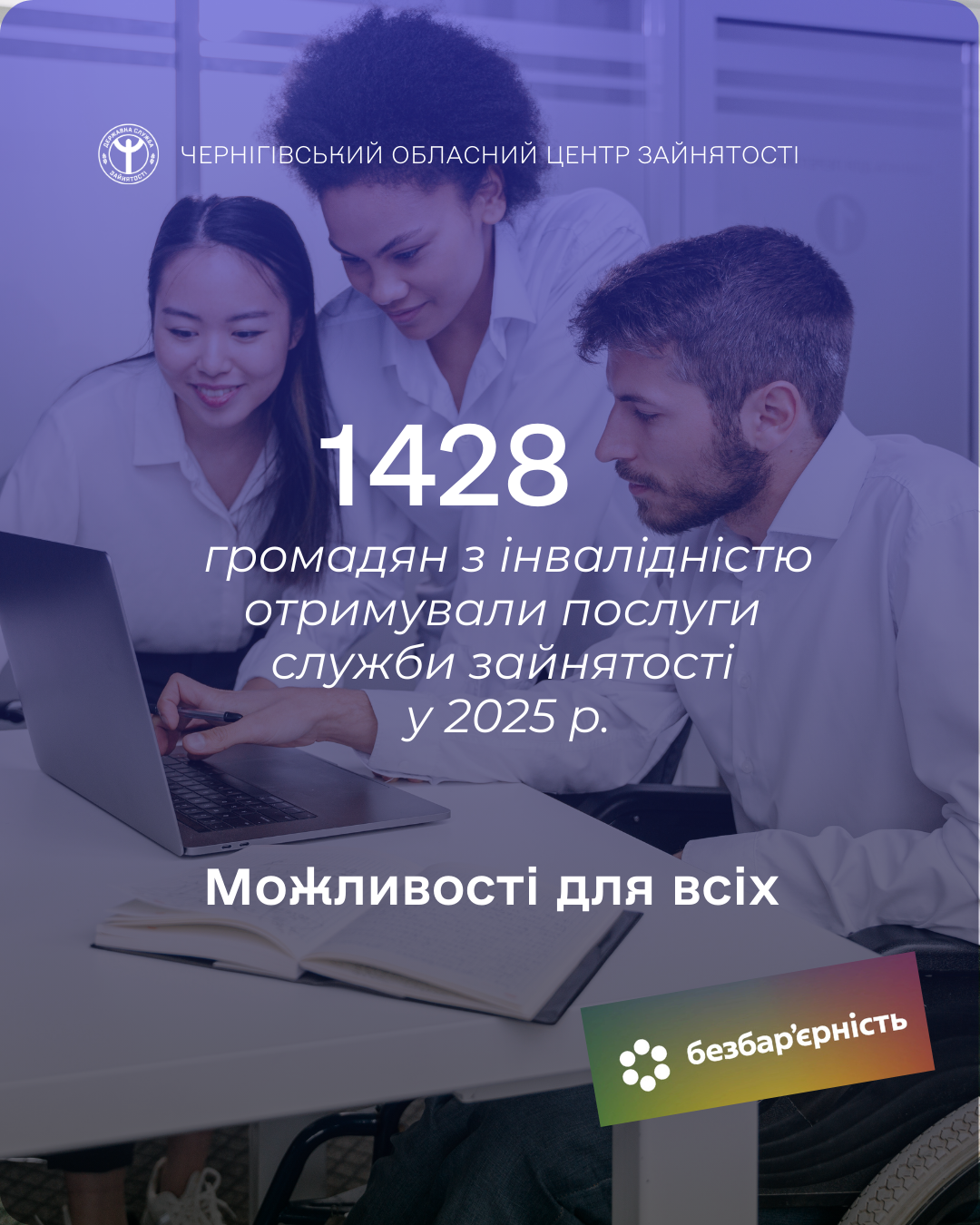У минулому році на Чернігівщині кількість отримувачів послуг Державної служби зайнятості серед людей з інвалідністю зросла на 5,5% порівняно з 2024 роком.