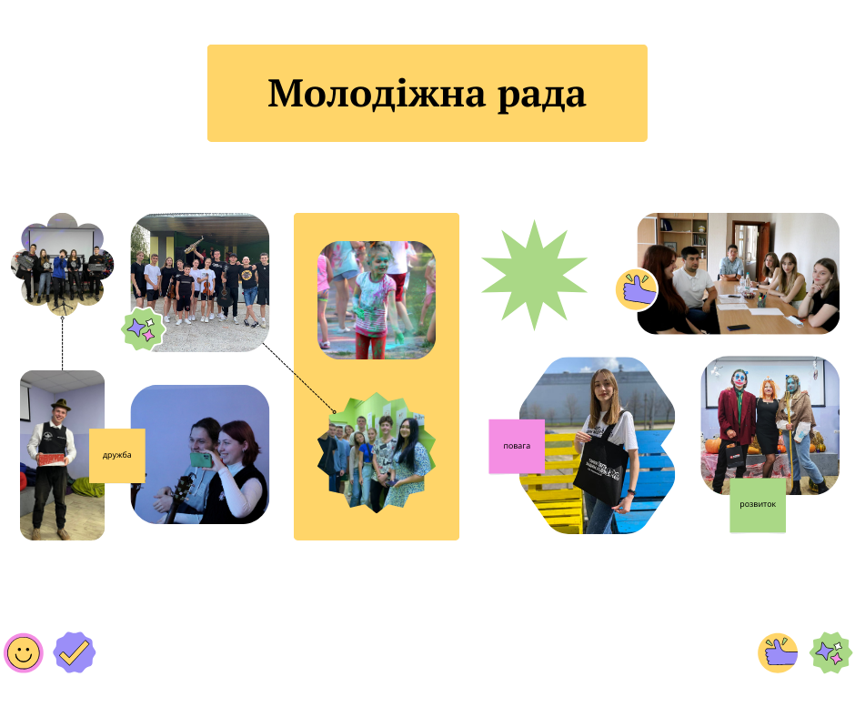 | 1. | Дарина Макаренко– голова Молодіжної ради | студентка |